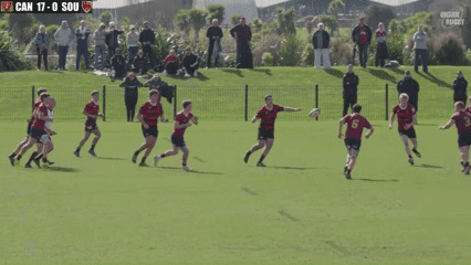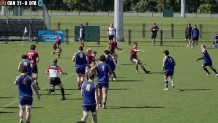 It is now that the risk of the extra rucks in midfield starts paying off: the AB XV have huge support numbers which can flood the channel after Reece has made the outside break. Both Jacomb and Reihana already start sprinting towards the space on Reece’s inside shoulder even while Havili’s bridge pass is still in the air.